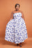 Soft drama meets timeless elegance. The Chiri Dress is crafted in a romantic floral print, featuring a strapless neckline, a full gathered skirt, and an exaggerated bow detail at the back that makes every exit unforgettable.