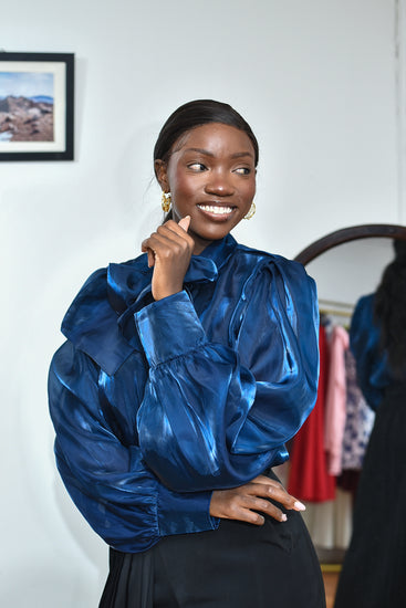 Where elegance meets bold sophistication. The Nyota Shirt is crafted from high-quality organza with a luxe sheen that catches the light beautifully. Featuring statement puffed sleeves and a dramatic pussy-bow neckline, this piece is made to stand out. Whether tucked into tailored trousers or styled with a skirt, Nyota adds instant glamour and polish to any look.